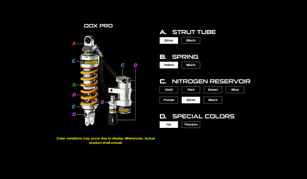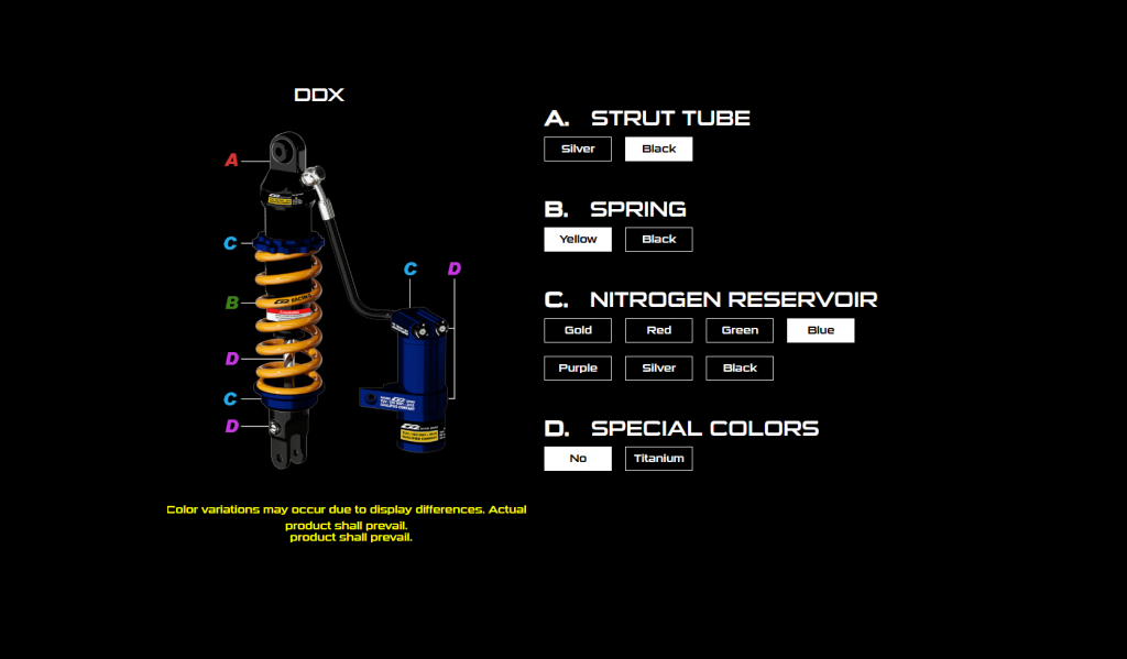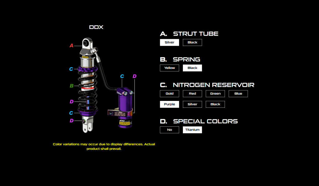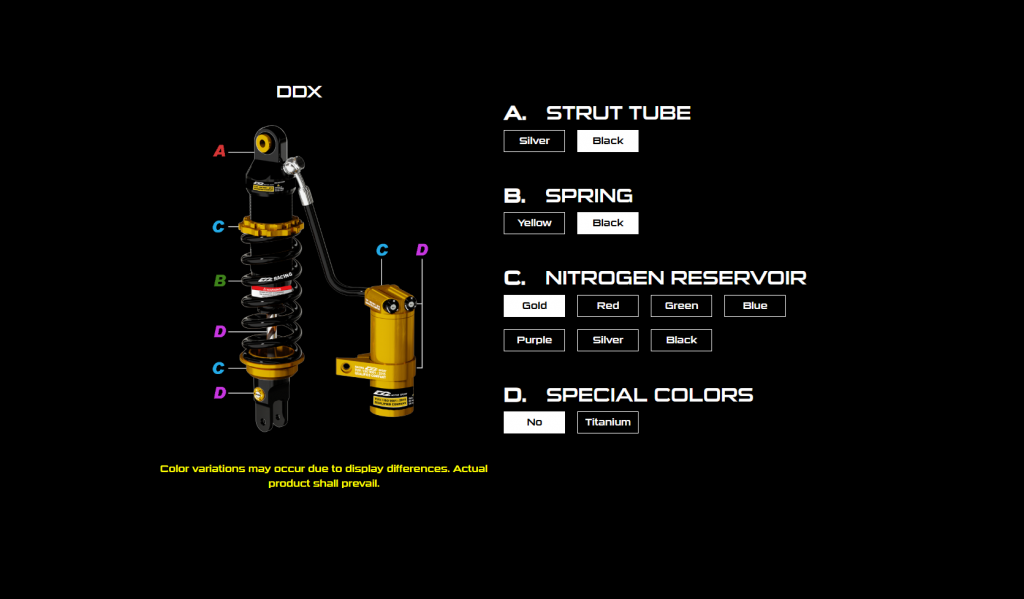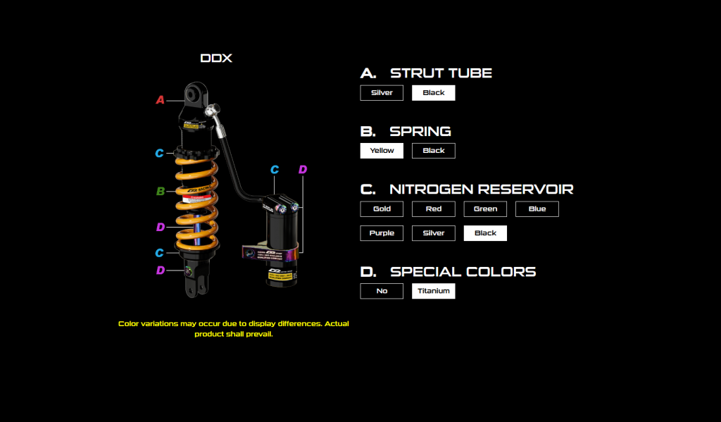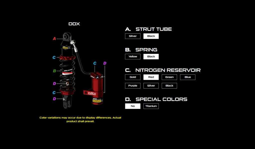 DDX series is the product which comes with outstanding performance and eye-catching appearance.This product is made by aeronautical Aluminum alloys; it can reduce weight greatly.Three adjustment knobs design effectively enhance the sensitivity and the compactness of damping.The compression and rebound damping settings can be adjusted easily according to rider’s set up to reach better stability and handling.You can enjoy the comfort and performance while riding.