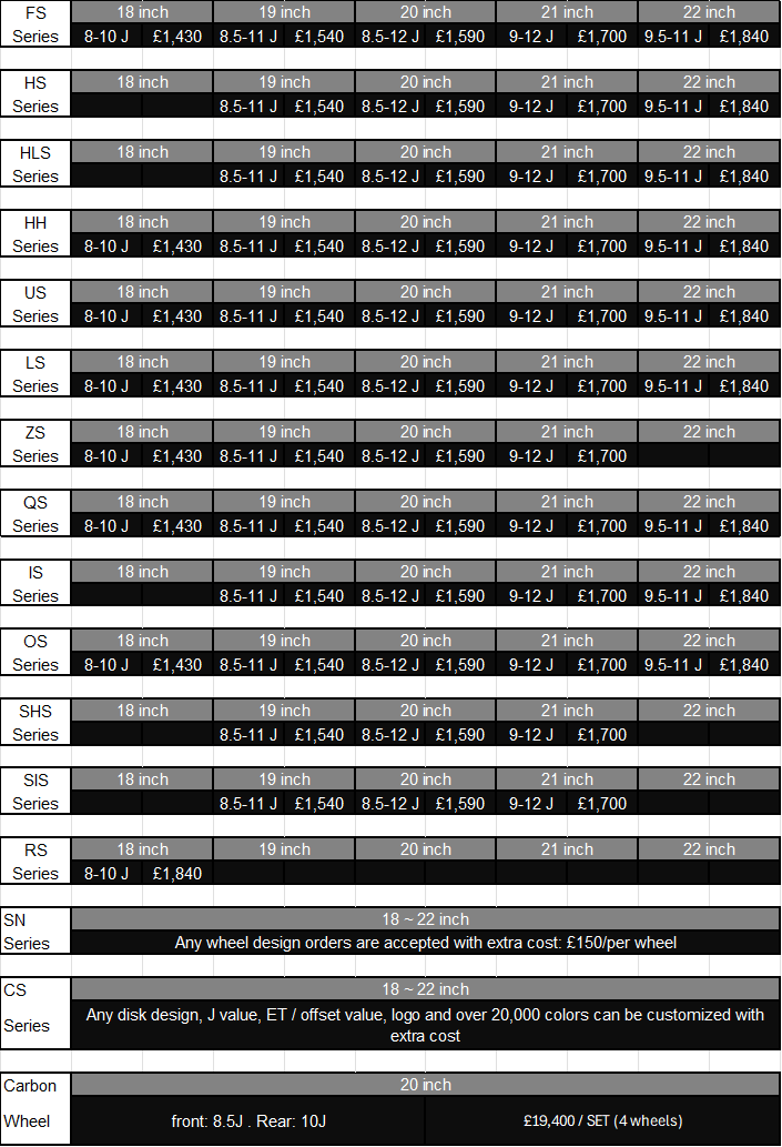 | 4. If there is direction of left and right difference for customised wheel, there will be an extra cost of £70/per wheel. | |